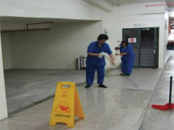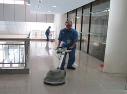 KAT's Cleaning Team performing cleaning duty in office building perimeter